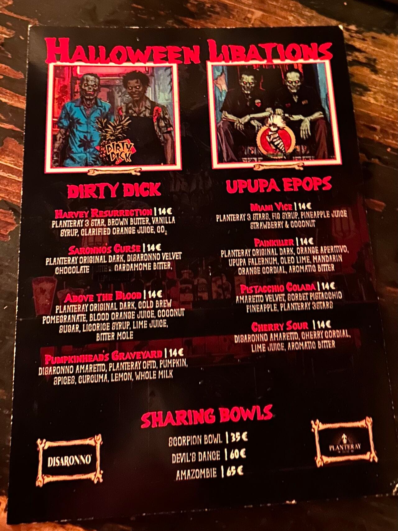 Enfilez votre plus belle chemise hawaïenne, direction le Dirty Dick ! Depuis de nombreuses années, cette institution fait vibrer la scène cocktail parisienne avec ses drinks garantis 100% tiki. Hormis les grands classiques du genre toujours à la carte, comme le Mai Tai ou le Zombie, le bar propose de nombreuses créations - à l’image de ces recettes à base de rhum Planteray lancées à l’origine pour Halloween et toujours servies pour notre plus grand plaisir. Attention : frissons garantis !